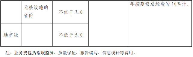 根据国家有关法律法规的规定以及环保总局、中央编办、发展改革委、财政部、科技部五部委关于加强核与辐射安全监管能力建设的意见,各级政府应给本地区环保部门在相关人员编制和经费保障方面提供必要的条件,提高监管能力,使之有效履行职能,切实管好放射性同位素与射线装置,保障核与辐射安全,其中要重点保障辐射环境监测与监察运行经费,支持各项业务正常稳定运行,对仪器设备更新维护等开展辐射环境监测与监察业务的基础条件应予以支持。辐射环境监测与监察机构业务费、仪器设备更新维护费、自动监测系统运行费及信息系统运行维护费标准见表2。