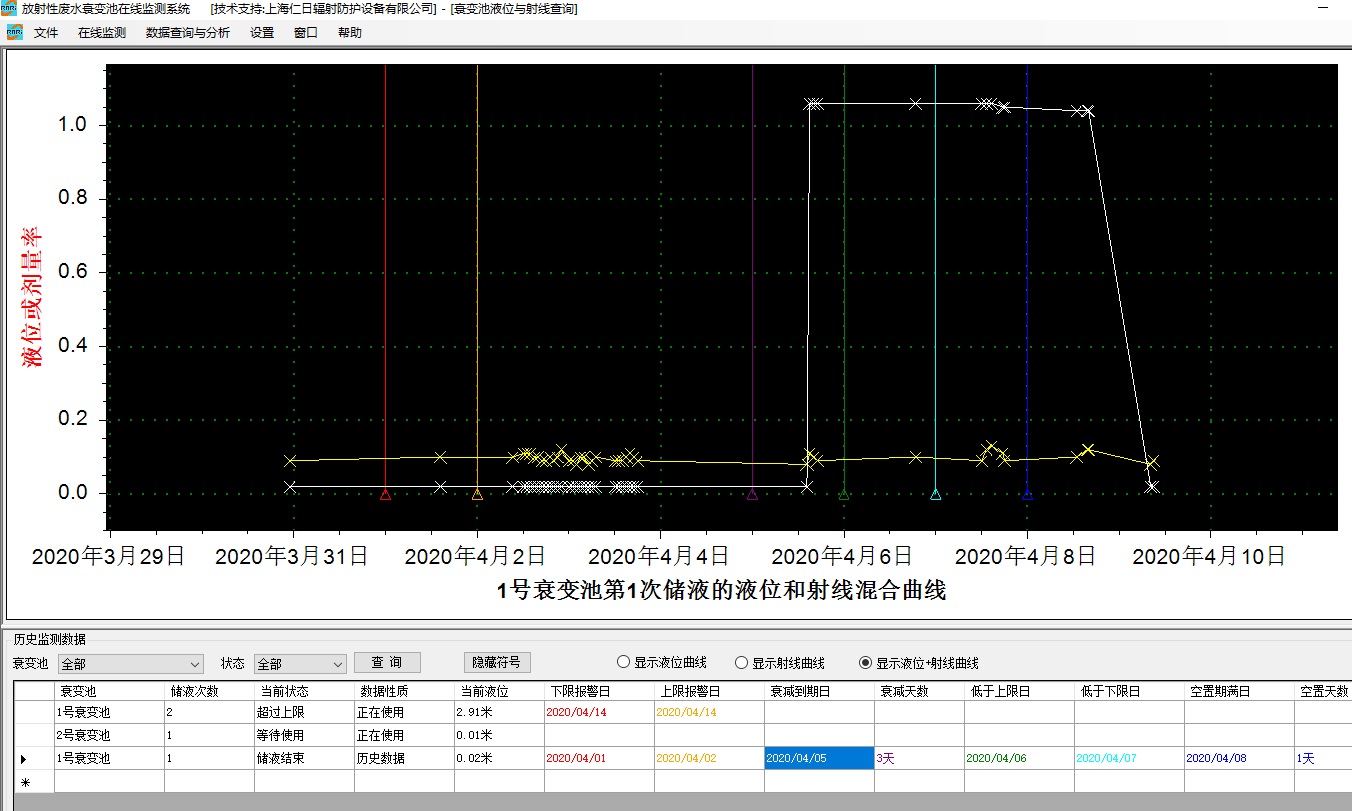 6、详细记录:每天以分钟为单位记录并保存衰变池的液位及射线强度数据。